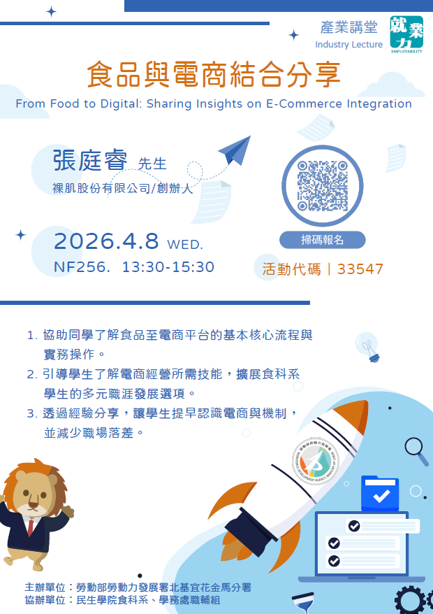 【專題演講】食品產學講座:食品與電商結合分享 (講者:張庭睿創辦人)-115/4/8